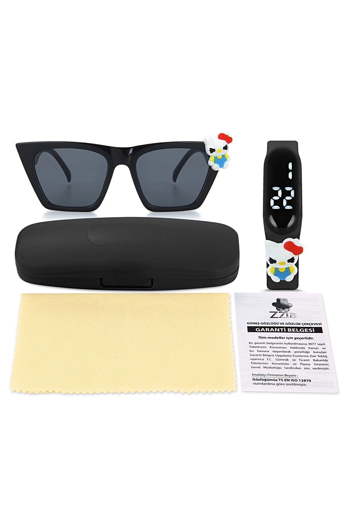 Uv400 Korumalı Çocuk Güneş Gözlüğü 50M Su Geçirmez Çocuk Kol Saati Renkli Kutu Hediyeli Si̇yah 210-219-Si̇yah-[ Ki̇tty-Beyaz ]